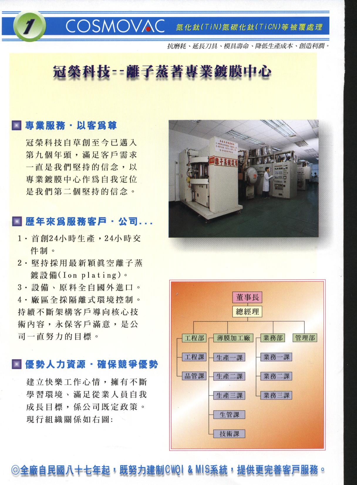 | 離子蒸著專業鍍膜中心(一) | ||